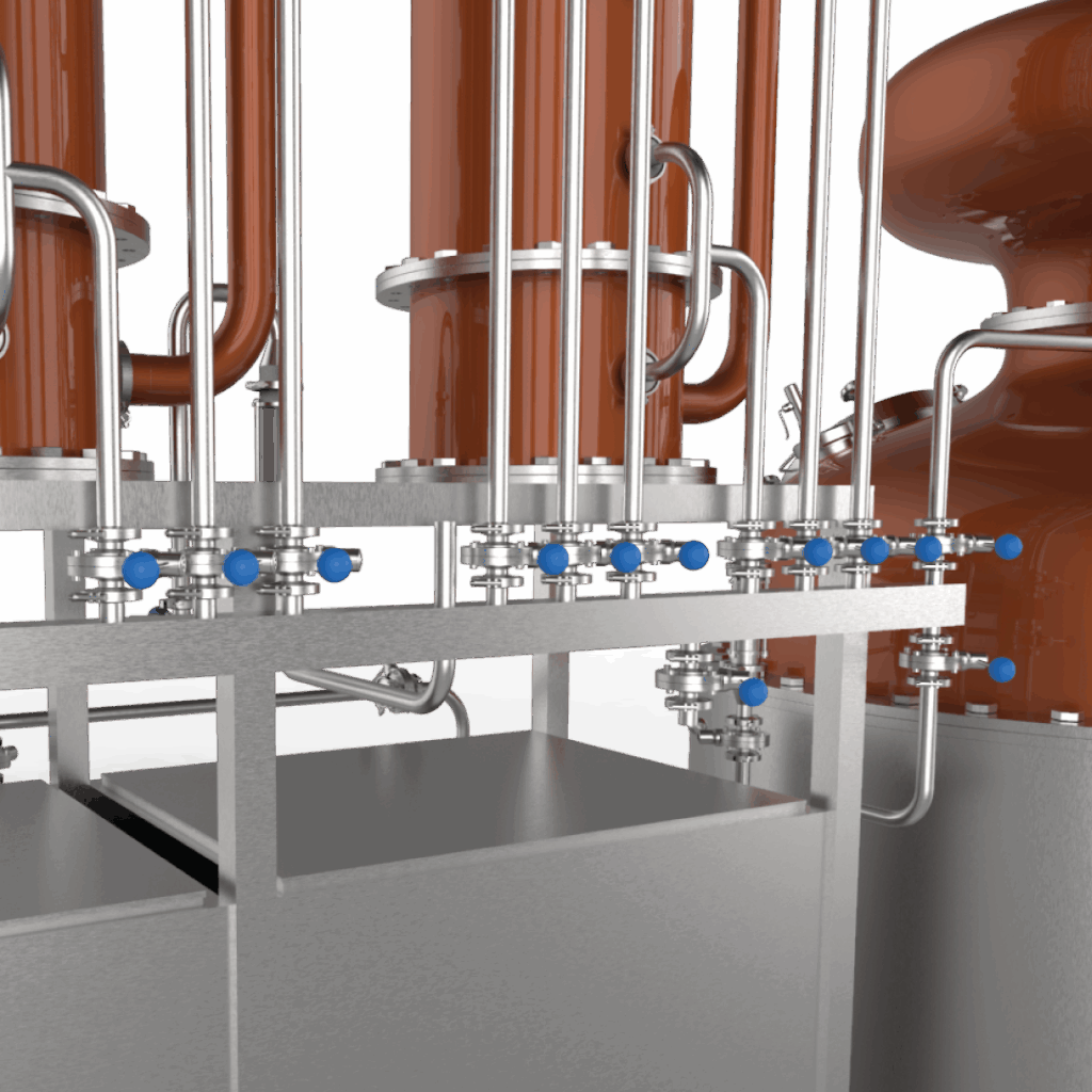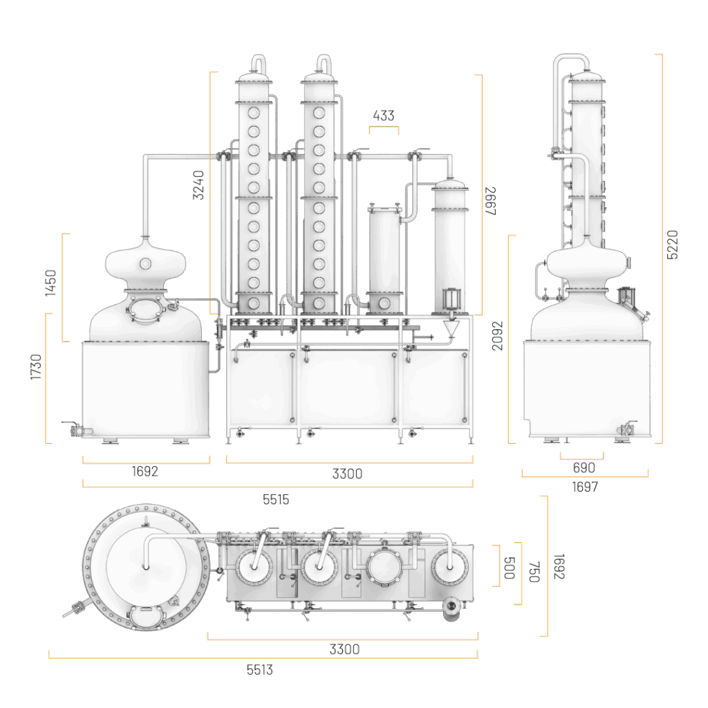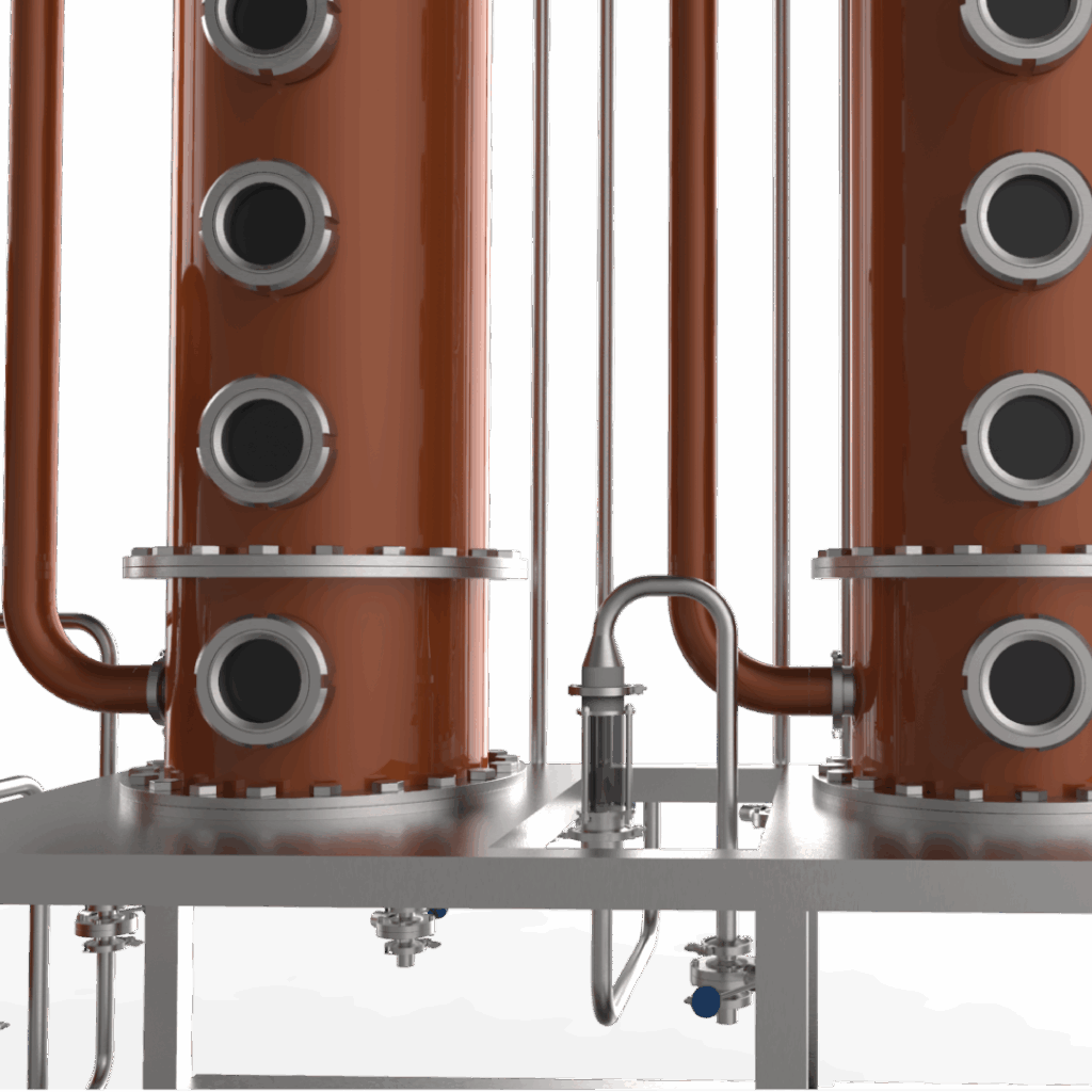 El Alambique híbrido esta confeccionado con una conbinacion de materiales como el cobre y el acero inoxidables AISI 304, pulido a espejo sanitario.